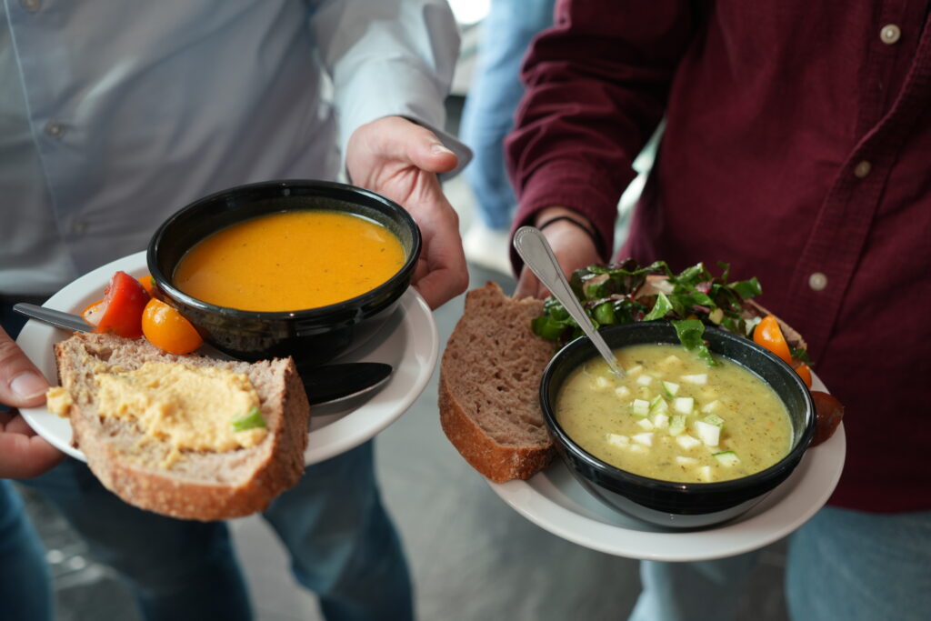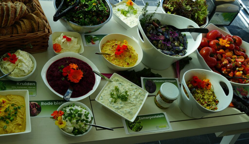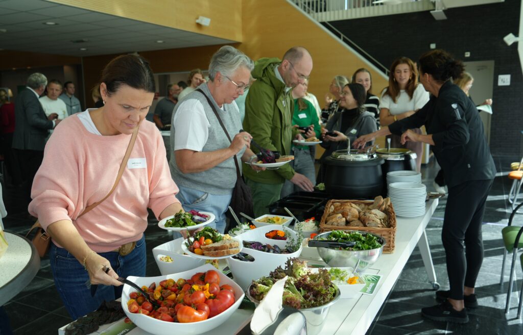 Omdat het uiteindelijk om lekker lokaal eten draait in Van land naar Lunch, werd om 12:00 uur voor alle aanwezigen een heerlijke, biologische lunch geserveerd. Die werd klaargemaakt door het HZ cateringteam, met groenten van tuinderij Plantalia. Zo konden de deelnemers ervaren hoe lekker lokaal en biologisch smaakt!