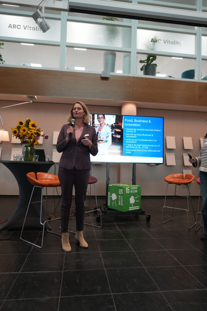 Na de koffiepauze spraken docente Elsbeth Spuijbroek en studente Liz Jonas van HZ University of Applied Sciences over de opleiding Food, Business & Innovation. Ze hebben deelnemers uitgedaagd om trends en ontwikkelingen in de voedselsector goed in de gaten te houden via ‘Trendwatching’.